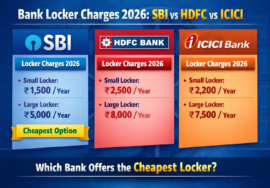 नीचे 2026 के बैंक लॉकर चार्जेस (Annual Locker Rent) का SBI, HDFC Bank और ICICI Bank के हिसाब से विस्तृत तुलनात्मक विश्लेषण पेश है