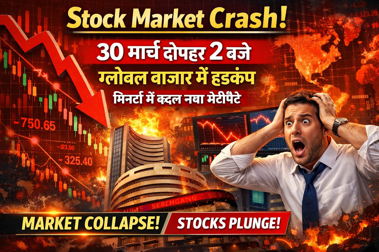 🔴 परिचय 30 मार्च 2026 को दोपहर करीब 2 बजे वैश्विक शेयर बाजारों में अचानक भारी गिरावट देखने को मिली। कुछ ही मिनटों में निवेशकों का सेंटीमेंट पूरी तरह बदल गया और बाजार में