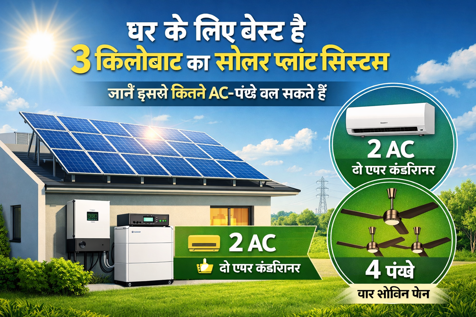 आज के समय में बढ़ती बिजली की कीमतों और बार-बार होने वाले पावर कट से परेशान होकर लोग सोलर एनर्जी की ओर तेजी से रुख कर रहे हैं। खासकर 3 किलोवाट (3kW) का सोलर प्लांट घरों