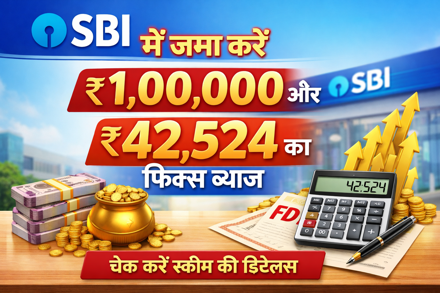 अगर आप अपने ₹1,00,000 को सुरक्षित निवेश के साथ गारंटीड रिटर्न में बदलना चाहते हैं, तो भारत का सबसे भरोसेमंद बैंक (SBI) आपके लिए शानदार मौका लेकर आया है। सोचिए, सिर्फ ₹1,00,000 जमा करके आप