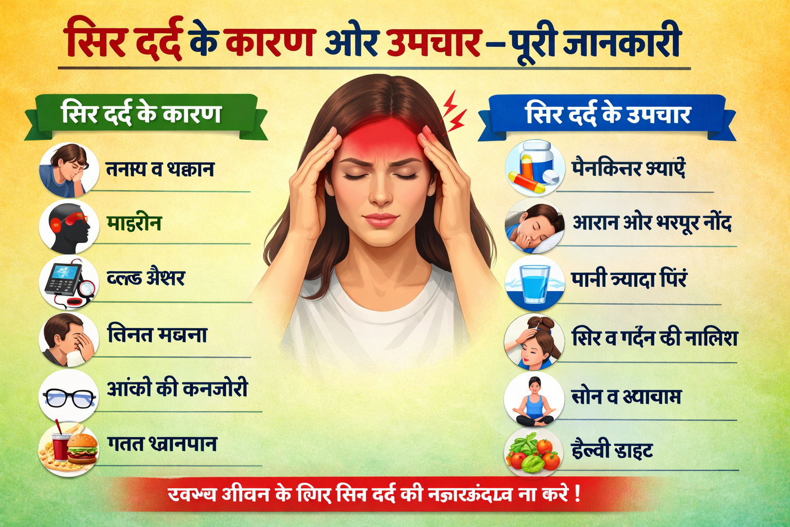 सिर दर्द यानी Headache एक आम समस्या है, जिससे लगभग हर व्यक्ति कभी-न-कभी परेशान होता है। कभी हल्का-सा दबाव महसूस होता है, तो कभी तेज धड़कन जैसा दर्द काम करने की क्षमता को भी कम कर