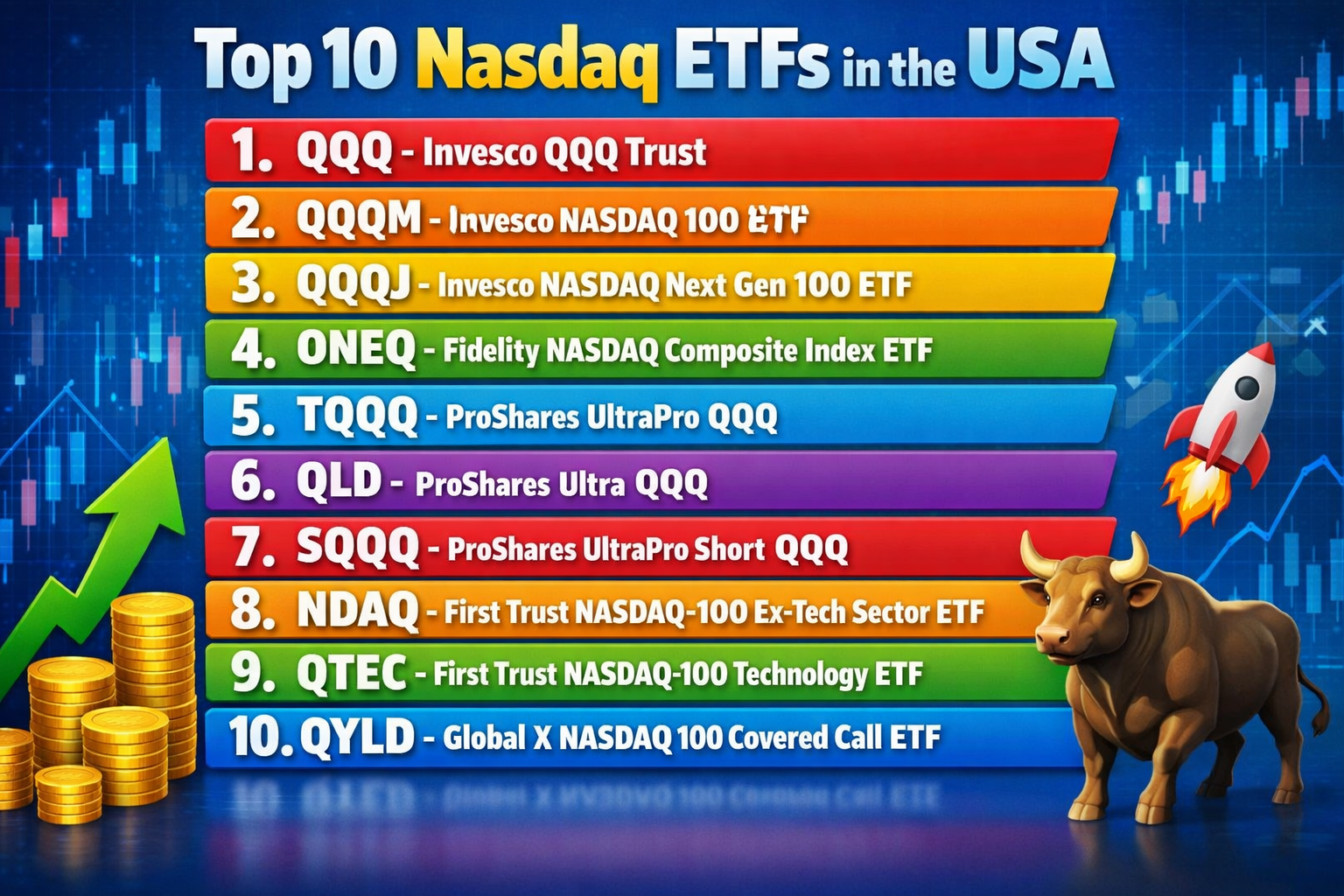 🌐 Top 10 Nasdaq ETFs in the USA — Smart Ways to Access Tech-Driven Growth If you’re looking to invest in the electrifying growth of the U.S. markets, particularly the technology and innovation-led companies, Nasdaq ETFs are some