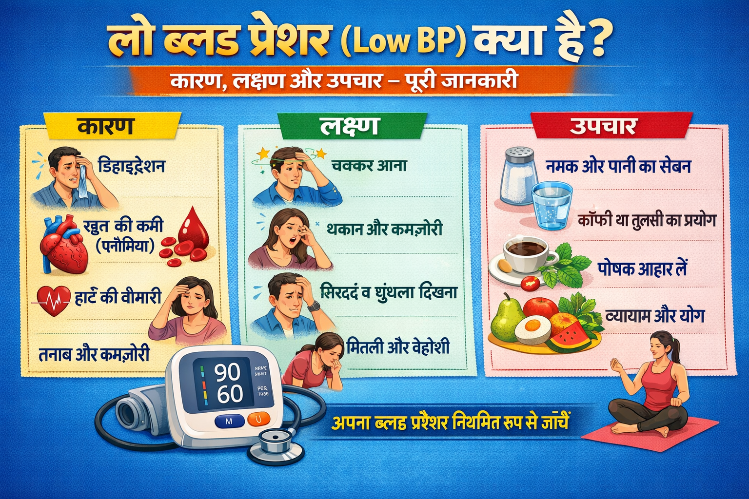 आजकल की भागदौड़ भरी जिंदगी में लोग अक्सर हाई ब्लड प्रेशर की बात करते हैं, लेकिन लो ब्लड प्रेशर (Low BP) भी उतना ही गंभीर हो सकता है। चिकित्सा भाषा में इसे कहा जाता है। जब किसी