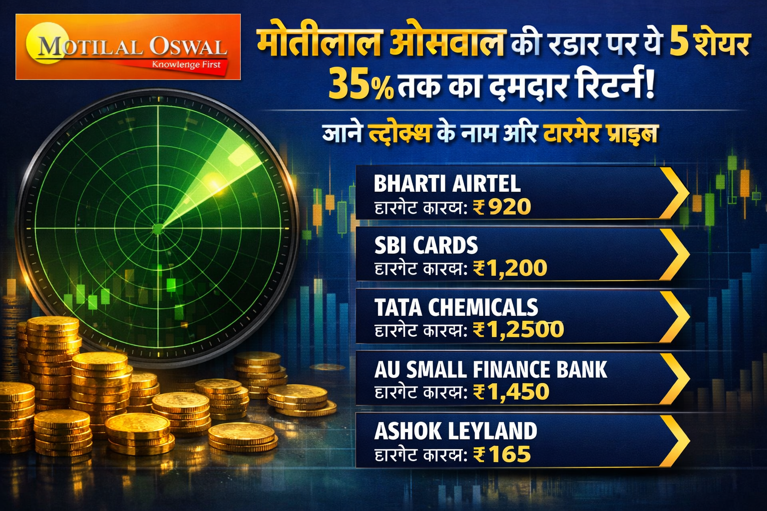 भारतीय शेयर बाजार में जब भी भरोसेमंद ब्रोकरेज हाउस की बात होती है, तो Motilal Oswal Financial Services का नाम प्रमुखता से लिया जाता है। हाल ही में मोतीलाल ओसवाल ने 5 ऐसे शेयरों