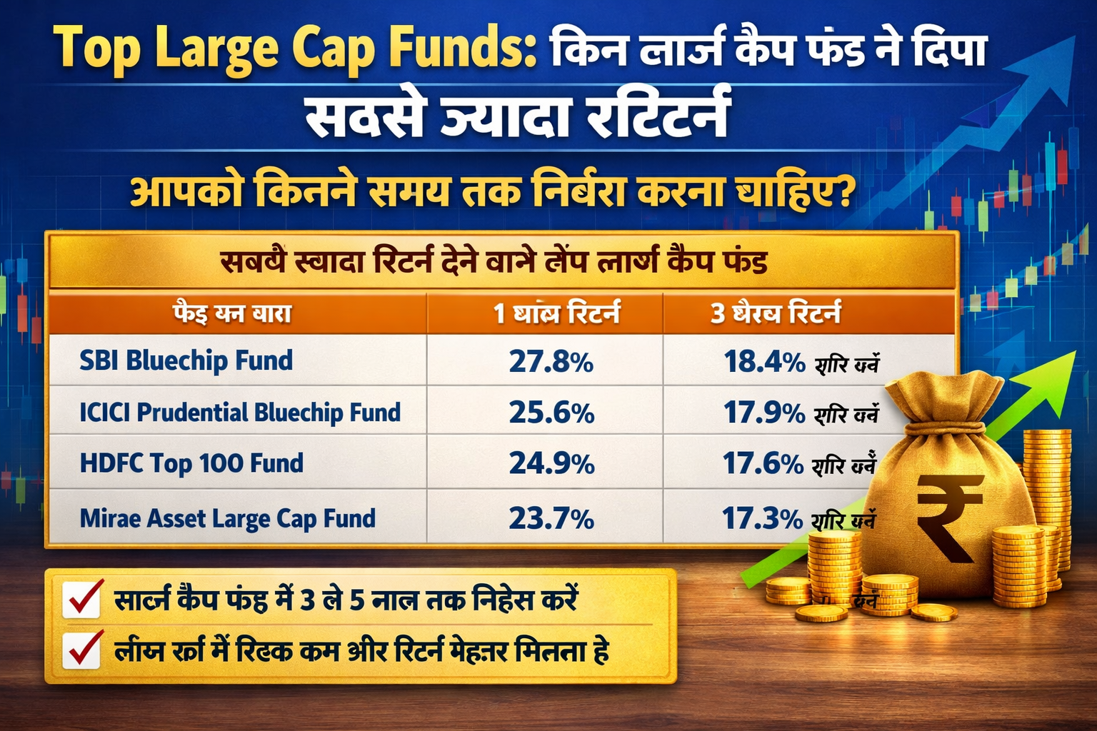 शेयर बाजार में स्थिरता और भरोसे के साथ निवेश करने की बात आती है तो लार्ज कैप म्यूचुअल फंड सबसे पहले दिमाग में आते हैं। ये फंड देश की बड़ी और स्थापित कंपनियों में