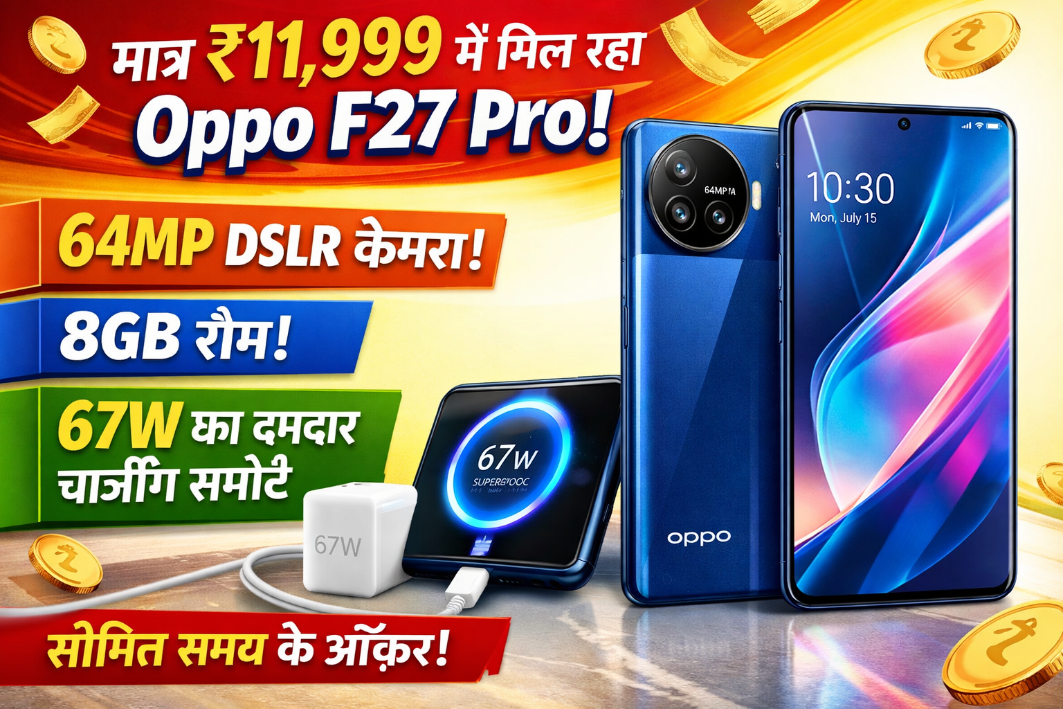 अगर आप कम बजट में प्रीमियम लुक, दमदार कैमरा और पावरफुल परफॉर्मेंस वाला स्मार्टफोन खरीदने की सोच रहे हैं, तो Oppo F27 Pro आपके लिए एक शानदार विकल्प बन सकता है। मात्र ₹11,999 की