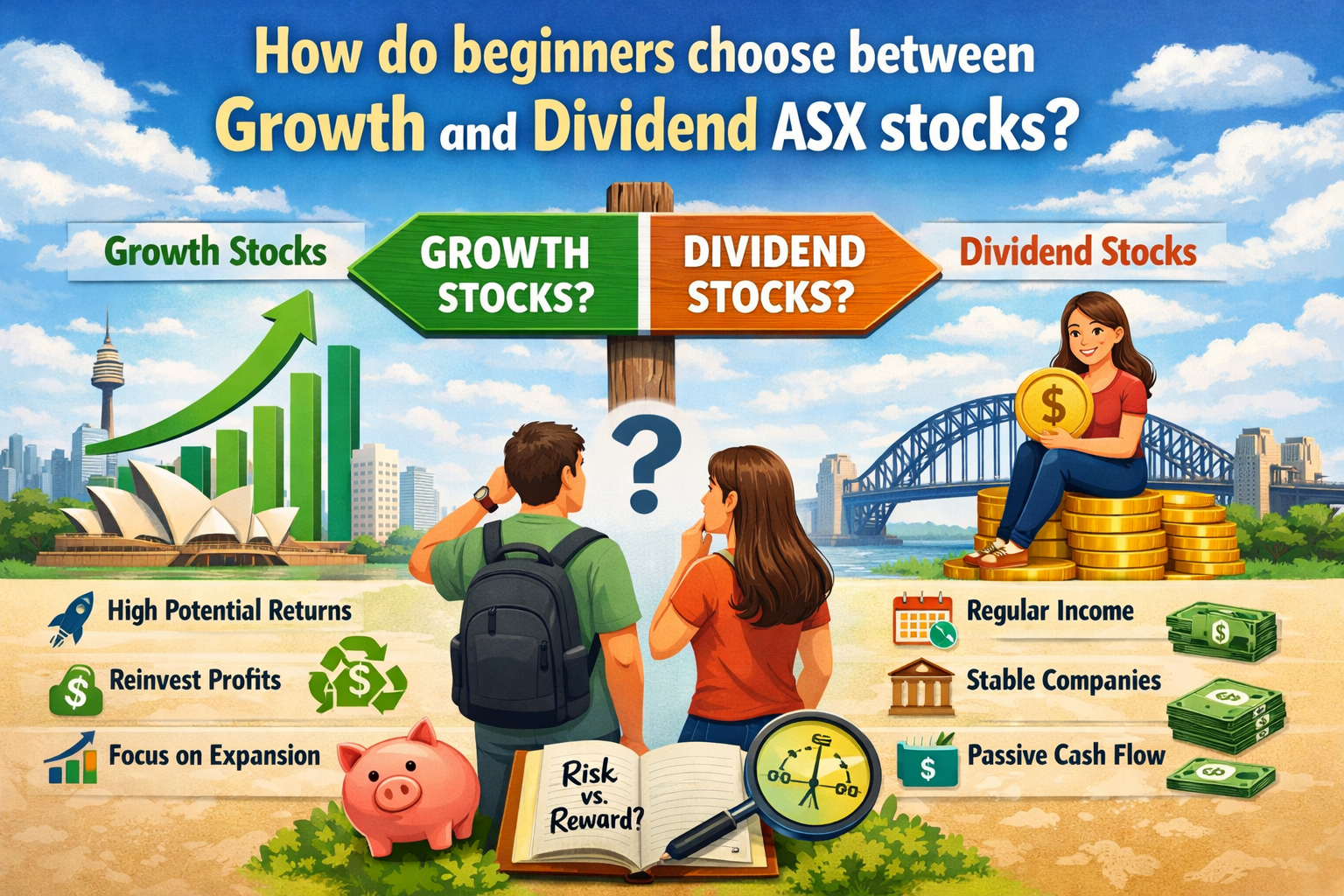 अगर आप शेयर मार्केट में नए हैं और ऑस्ट्रेलिया के शेयर बाजार यानी Australian Securities Exchange (ASX) में निवेश करना चाहते हैं, तो सबसे बड़ा सवाल यही होता है – Growth Stocks चुनें या