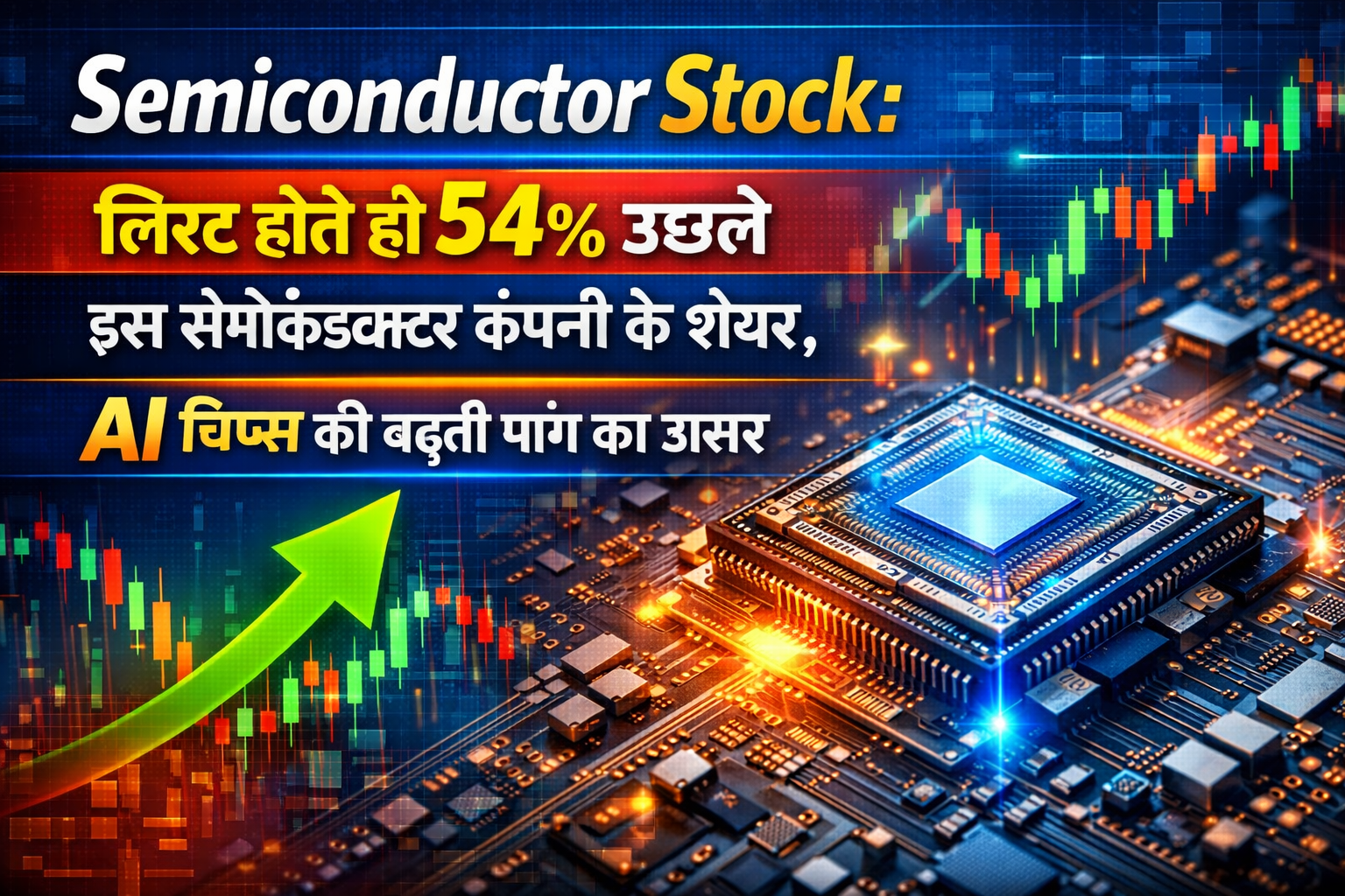 शेयर बाजार में सेमीकंडक्टर सेक्टर एक बार फिर सुर्खियों में है। हाल ही में लिस्ट हुई एक सेमीकंडक्टर कंपनी के शेयरों ने निवेशकों को चौंकाते हुए पहले ही दिन करीब 54% की जबरदस्त तेजी