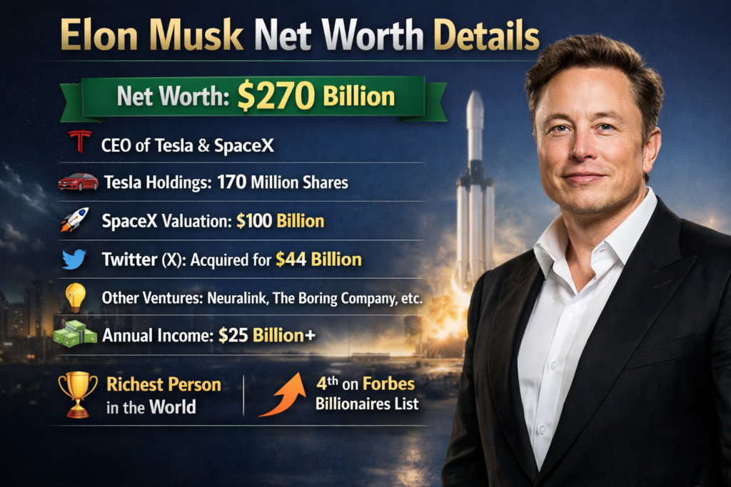 Elon musk की नेट वर्थ