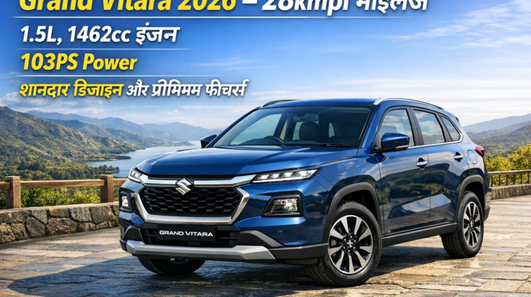Grand Vitara 2026 – 28kmpl माइलेज, 1.5L, 1462cc इंजन 103PS Power, शानदार डिजाइन और प्रीमियम फीचर्स