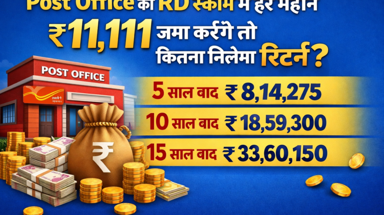 अगर आप सुरक्षित और गारंटीड रिटर्न वाला निवेश ढूंढ रहे हैं, तो पोस्ट ऑफिस की RD (Recurring Deposit) स्कीम आपके लिए एक बेहतरीन विकल्प हो सकती है। खासकर उन लोगों के लिए जो हर महीने एक तय राशि बचाकर भविष्य के लिए मजबूत फंड बनाना चाहते हैं। आइए जानते हैं कि अगर आप हर महीने ₹11,111 जमा करते हैं, तो आपको कितनी रकम मिल सकती है और यह स्कीम क्यों फायदेमंद है।